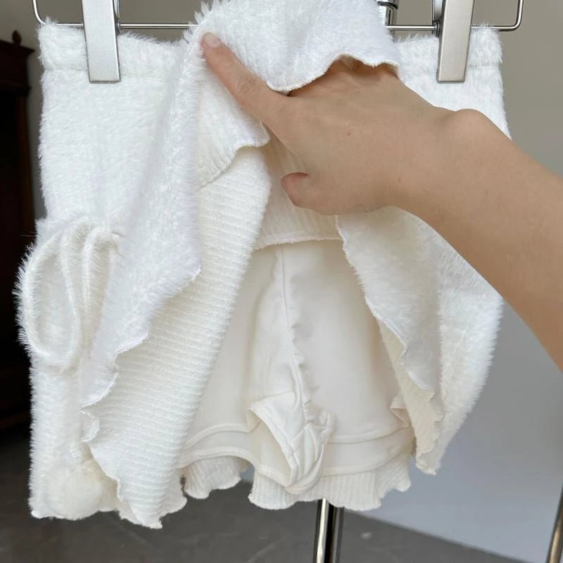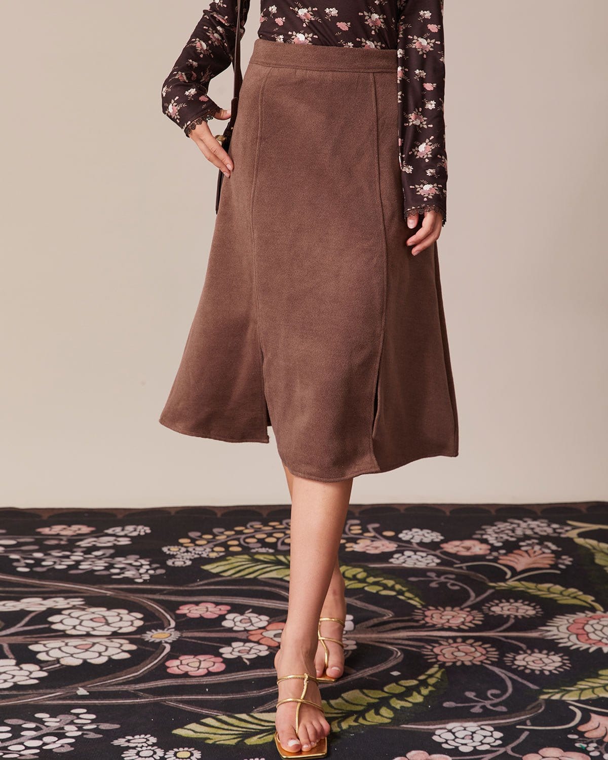 The Beige Elastic Waist Striped Knit Midi Skirt