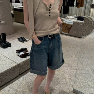 Styled with black denim button skort .
